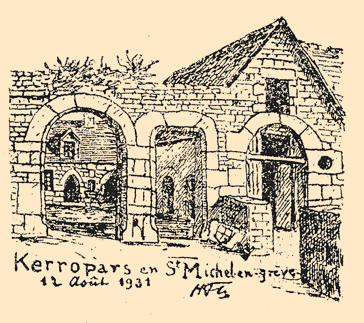 i Église de Trégastel. Dessin du vicomte Frotier de la Messelière. Date difficile à déchiffrer. |