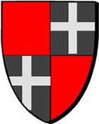 "écartelé au 1 et 4 de gueules plein; au 2 et 3 de sable à la croix d'argent" 'palefarzhet, d'an 1 ha 4 leun a wad; d'an 2 ha 3 e sabel e groaz en arc'hant" |