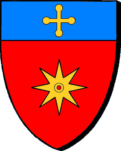 | Originaire de Provence Seigneurs de la Coste Gaspar d'Agard, maire de Brest en 1661 "de gueules à une molette d'or de huit pointes, au chef cousu d'azur, chargé d'une croix pommelée d'or" "en gwad e rodig-kentr en aour a eizh vroud, e gab en glazur karget gant ur groaz avalaouek en aour" Saint-Renan. 1670 (PPC) |