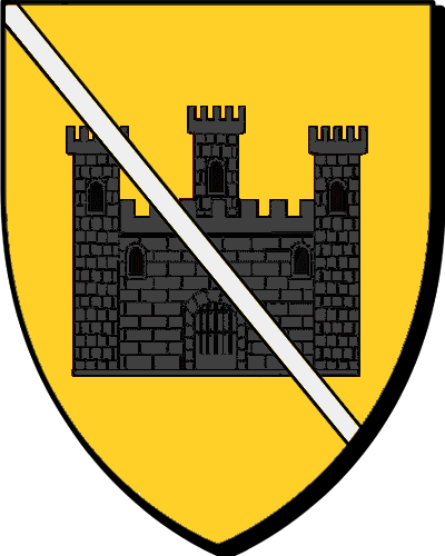 en Guern "d'or au château de sable, au bâton d'argent brochant" "en aour e c'hastell en sabel, e sourinan en arc'hant balirant" références et montres de 1427 à 1536 (PPC) |