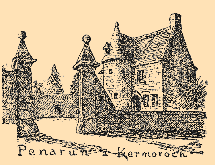 * Régis de Saint-Jouan (1990) : "Kermorch, début 1790; Kermoroch, 1804; Kermoroc'h, 1936". * Bernard Tanguy : "Kermorech, 1405; Kermoroch, 1581; en breton : Kervoh". "Le second élément, que l'on trouve associé sans doute au breton lann; 'ermitage' ou 'lande', dans Lanvoroch, hameau de Berric (Morbihan), est attesté aujourd'hui comme nom de famille sous la forme Moroc'h et comme anthroponyme au XIIè siècle, noté Moruhc ( = Moruch), et parait correspondre au breton morhouh 'dauphin'. Il est aussi à l'origine, précédé du breton ker et de l'article défini, de Keramorc'h, village de Plounévez-Moëdec, anciennement Keranmoroch". * Éditions Flohic (1998) : "du breton ker, village, et d'un anthroponyme Moruhc ou Moruch, correspondant peut-être au breton morhouh, dauphin". * Hervé Abalain (2000) : "ker + anthroponyme, qui signifie "marsouin". ***** |