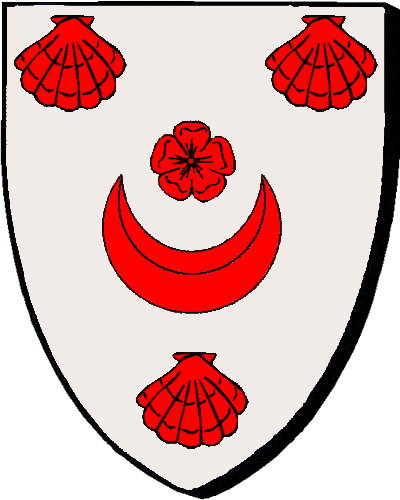 "d'argent au croissant surmonté d'une rose et accompagné de trois coquilles, le tout de gueules" "en arc'hant e greskenn leinet gant ur rozenn, hag heuliet gant teir kregilhenn, an holl en gwad" références et montres de 1427 à 1562 devise / sturienn Potius mori quam foedari (PPC) |