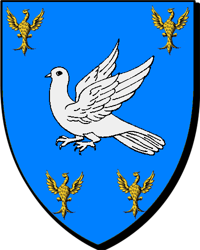 "d'azur au lion d'argent" / "en glazur e leon en arc'hant" Cette famille qui a produit trois auditeurs à la Cour des Comptes de Bretagne, à Nantes, de 1571 à 1606, s'est fondue en 1653 dans La Roche-Saint-André. |