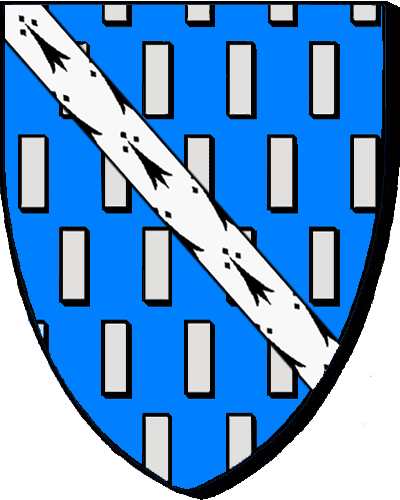 Famille le Baillif : seigneur de Tourault, en Plougrescant; Kernuz, en Perros-Guirec. "d'azur au chevron d'argent, accompagné de trois besants de même, 2, 1" / "en glazur e gebrenn en arc'hant heuliet gant tri bezantenn ivez en arc'hant, 2, 1". références et montres de 1427 à 1543. (PPC) |