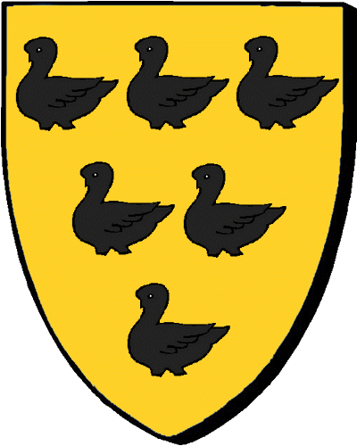 "d'azur à la fasce d'or, accompagnée de trois canettes d'argent" "en glazur e dreustell en aour, heuliet gant teir houadan en arc'hant" - Zacharie, receveur des traites foraines d'Anjou, père de - Louis, conseiller au Parlement de Bretagne en 1633. |