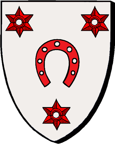 "Gironné d'or et de gueules de douze pièces" / "Barlennet etre aour ha gwad a zaouzek pezh" alias / neuz all : "d'azur au chevron d'or, chargé en chef d'un croissant de gueules, et accompagné de trois étoiles d'or" "en glazur e gebrenn en aour, karget ouzh kab gant ur greskenn en gwad, hag heuliet gant teir steredenn en aour" - Trois conseillers au Parlement de Bretagne de 1593 à 1632. - Jean, conseiller au Parlement de Bretagne en 1593. - Pierre, conseiller au Parlement de Bretagne en 1622. - Louis, conseiller au Parlement de Bretagne en 1632. |