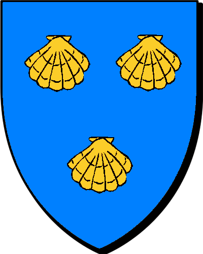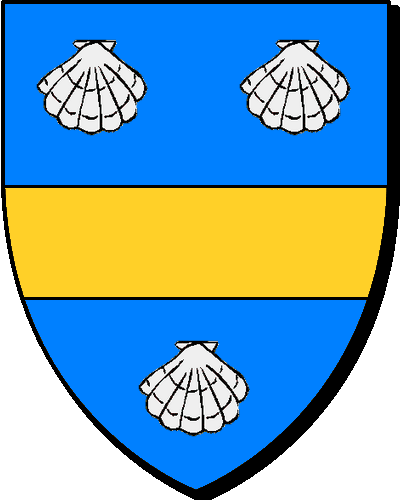 "d'argent au chevron d'azur, accompagné de trois molettes de gueules" 'en arc'hant e gebrenn en glazur, heuliet gant teir rodig-kentr en gwad" - Gilles, conseiller au Parlement de Bretagne en 1597, marié à Françoise Bouault. Le seigneur de Grandmaison, auditeur des Comptes en 1736. Les seigneurs de Malherbe et de la Vicendière, en Bretagne, alliés aux Budans et aux Huchets, portent les mêmes armes |