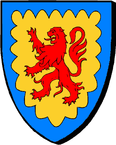"d'or semé de croisettes de sable, au lion du même brochant" "en aour hadet gant kroazigannoù en sabel, e leon balirant ivez en sabel" - Antoine, conseiller aux Grands-Jours de Bretagne en 1540. |