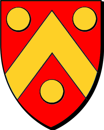 "de gueules au chevron d'argent, accompagné de trois étoiles de même" / "en gwad e gebrenn en arc'hant heuliet gant teir steredenn ivez en arc'hant" (Armorial de l'Arsenal) - Jean, auditeur, puis maître en la Chambre des Comptes de Bretagne en 1414; - Famille fondue dans COUAISNON. |