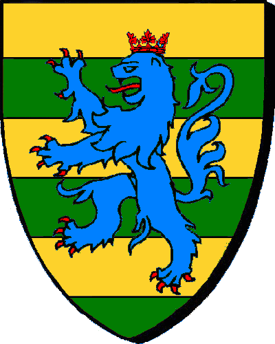 marquis d'Ardaine en 1684, par. Anc. ext. chev., réf. 1669, dix gén.; réf. de 1427 à1543, par. de Trans, Saint-Georges, Rimou et Pleumeur-Gautier, év. de Rennes, Dol et Tréguier. D’azur à deux léopards d’or l’un sur l’autre, armés, lampassés et couronnés de gueules En glazur e zaou leonparzh en aour an eil dreist egile, krabanet, teodet ha kurunet en gwad (Sceau / Sielle : 1392). - Robert, accompagne le duc Guillaume a la conquête d'Angleterre en 1066; - Raoul, abbé de Lire, au diocèse d'Évreux en 1282; - Geoffroi, capitaine de Saint-James de Beuvron en 1359; - Jean, premier écuyer du roi Charles VI en 1403; - Jean, vice-chancelier du duc François II, décédé en 1480; - Jean, gouverneur de Fougères, épouse en 1485 Marie, dame du Pontglo; - César, chevalier de I'ordre en 1600; - François, chevalier de l'ordre, gentilhomme de la chambre et maréchal de camp en 1 649, épouse en 1637, Charlotte de Poilley; - des capitaines de cinquante et cent hommes d'armes d’ordonnances; - deux chevaliers de Malte en 1645 et1717; - Jean-Baptiste, chevalier de Malte en 1645; - un abbé de Maiziéres, au diocèse de Chalons-sur-Saône en 1748. La branche de Sacé fondue dans BUDES; la branche de la Chesnelaye et d’Ardaine fondue en 1728 dans RONCHEROLLES, d'ou le marquisat de la Chesnelaye a passé aux BOISBAUDRY; par acquêt en 1765 aux la MOTTE, puis par alliance aux LA FORET D'ARMAILLE et aux PALYS. |