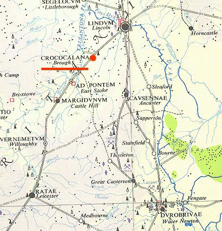 HistoireCrococalana / Brough se trouve sur la Fosse Way, au sud-ouest de Lindum / Lincoln en direction de Ratae / Leicester, ce qui tend à placer sa création au moment de la construction de cette route, entre 50 et 60 après J-C.
