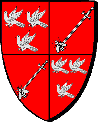 "d'argent au croissant surmonté d'une rose et accompagné de trois coquilles, le tout de gueules" "en arc'hant e greskenn leinet gant ur rozenn, hag heuliet gant teir c'hregilhenn, an holl en gwad" références et montres de 1427 à 1562 devise / sturienn : Potius mori quam foedari (PPC) |