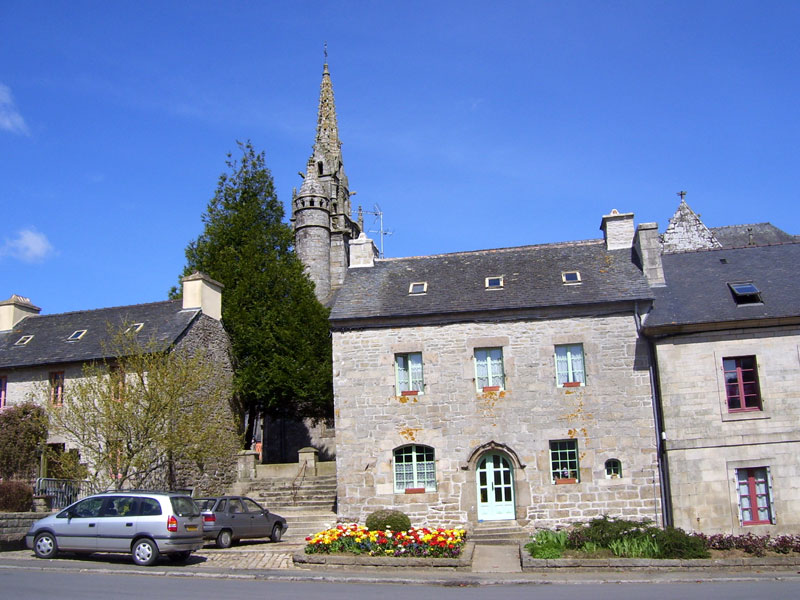 | Histoire / Istor : * Ogée (1780) : Guerlesquin; gros bourg à 8 lieues 1/2 au S.-S.-O. de Tréguier, son évêché [aujourd'hui Quimper] ; à 31 lieues de Rennes, et à 4 lieues de Morlaix, sa subdélégation. Cette paroisse ressortit au siège royal de Lannion. On y compte 1000 communiants. La cure est à l'alternative. Son territoire est plein de montagnes. On y voit des terres très-fertiles , des pâturages abondants, des fruits, beaucoup de landes, et le bois de Locmaria, qui peut avoir deux lieues de périmètre. Il y a dans ce territoire cinq hautes-justices, qui sont celles de Guerlesquin, le Menés, Keradenec [Ker-radenec, double emploi] , Trogore et Besson [Beffou], Les trois premières sont à M. le Pelletier; la quatrième à M. le Favre, et la cinquième à M. de Goësbriand. Les maisons nobles sont : Tredillac, Keradenec, Kerret, Querlesquen [double emploi pour Guerlesquin] , Kerarchan, au sieur de Meur; cette maison a donné un écuyer de la petite écurie du roi, qui, en 1660, fut gouverneur de Lannion; et un docteur eu l'Université de Paris, connu sous le nom d'André de Meur : la Ville-Neuve, Penaru [Penanrez], et le Plessis-Mivier. * Marteville et Varin (1843) : GUERLESQUIN (sous