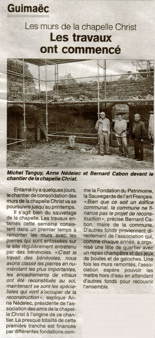 Article paru dans l'hebdomadaire Le Trégor du 22 septembre 2005 |