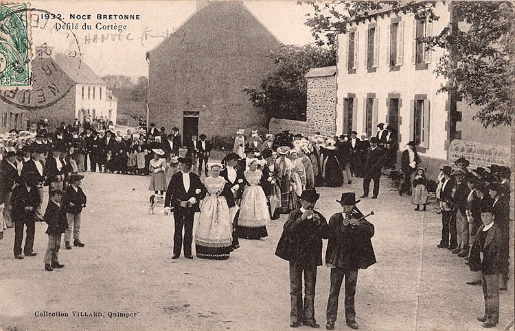| Histoire / Istor : * Ogée (1780) : Hanvec; à 8 lieues 1/4 au N. de Quimper, son évêché; à 39 lieues 1/2 de Rennes, et à 1 lieue 1/6 du Faou, sa subdélégation. Cette paroisse relève du roi, et compte, y compris ceux de Rumengol et de Lauvoy, ses succursales, 2600 communiants. La cure est à l'Ordinaire, pour un chanoine de Daoulas. C'est un pays plat, où on trouve pourtant quelques vallons, peu de prairies, beaucoup de landes, des arbres fruitiers et quelques bois taillis, dont le plus considérable est celui de Keroliver. Ou y recueille des grains de toute espèce. En 1400, ou connaissait , dans ce territoire, les manoirs de la Roche-Boezien, où demeurait le vicomte du Faou, qui possédait aussi celui de Kercadiou, Quilliazel, Kerliver, Kerausouar, Kerascouet, Nautelon, et celui de l'abbé de Daoulas. [La maison seigneuriale de Mescam, relevant du Faou, appartenait, en 1396, à Olívier de Cornouaille, et, en 1492, à Jean de Quelen.] * Marteville et Varin (1843) : HANVEC (sous l'invocation de saint