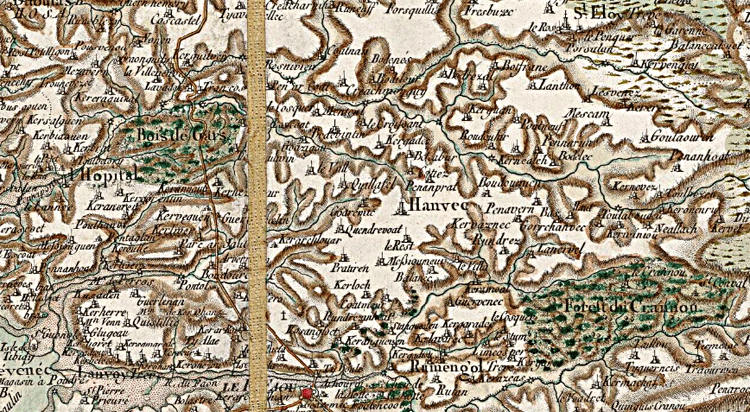 de landes, de terres incultes et de bois. Situé à mi-distance de la forêt Ancienne possession de l'abbaye de Landévennec, à laquelle elle fut donnée,