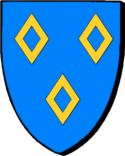 * Froger & Pressensé (2001) : "d'azur à 3 mâcles d'or, en 2 et 1". J.-C. Even : "En glazur, e deir mailhenn en aour" |