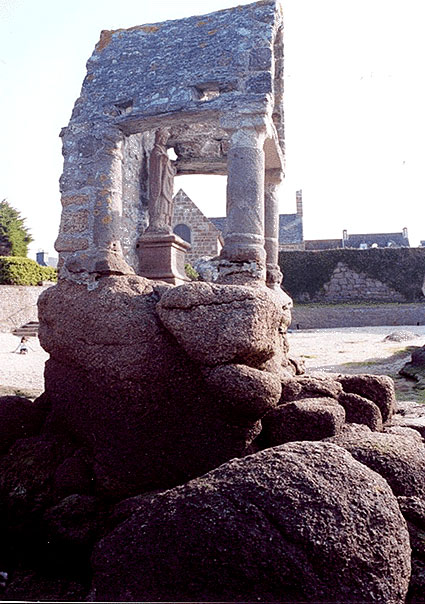 L'oratoire de Saint Guirec, vu de quart arrière gauche, à marée montante.