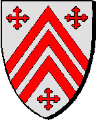 "Fretté d'azur et d'argent, à un croissant de gueules brochant en chef" * J.C. Even : "Plezhek etre glazur hag arc'hant, e greskenn en gwad balirant ouzh kab" |