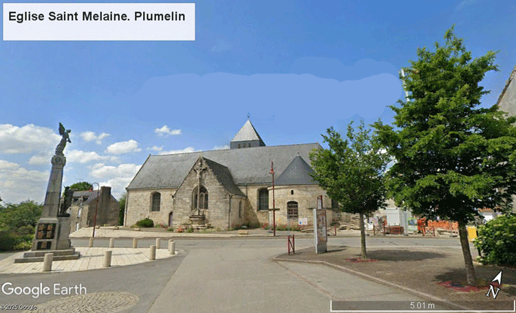 Histoire / Istor : * Ogée (1780) : Plumelin; à 5 lieues au N.-N.-O. de Vannes,, son évêché; à 20 lieues de Rennes; et à 5 lieues 1/2 de Pontivy, sa subdélégation. Cette paroisse ressortit à Ploërmel, et compte 1700 communiants. La cure est à l'alternative. Des ruisseaux, des terres en labeur, des prairies, des arbres fruitiers et des landes, voilà ce que ce territoire offre à la vue. La maison noble de Kerboulec est à peu de distance du bourg. L'an 1296, Henri de Kergouet vendit à Alain, vicomte de Rohan, tous ses biens et la rente appelée trevisière, qu'il avait dans la paroisse de Plumelin. En 1430, le manoir Kerlégou appartenait à Jean de la Ville-Audren. * Marteville et Varin (1843) : PLUMELIN; commune formée