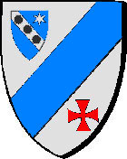 "d'argent à trois pals de gueules; au chef d'azur chargé de deux quintefeuilles d'argent" "en arc'hant e zri feul en gwad; e gab en glazur karget gant div fempdiliaouenn en arc'hant" - Pierre, valet de chambre ordinaire du Roi, anobli en 1601; Cette famille, alliée en Bretagne aux Beaumanoir et aux Goyon de Marcé, a produit un secrétaire du Roi en 1657, un maréchal-de-camp en 1718, et trois chevaliers des ordres, de 1661 à 1731. (PPC) |