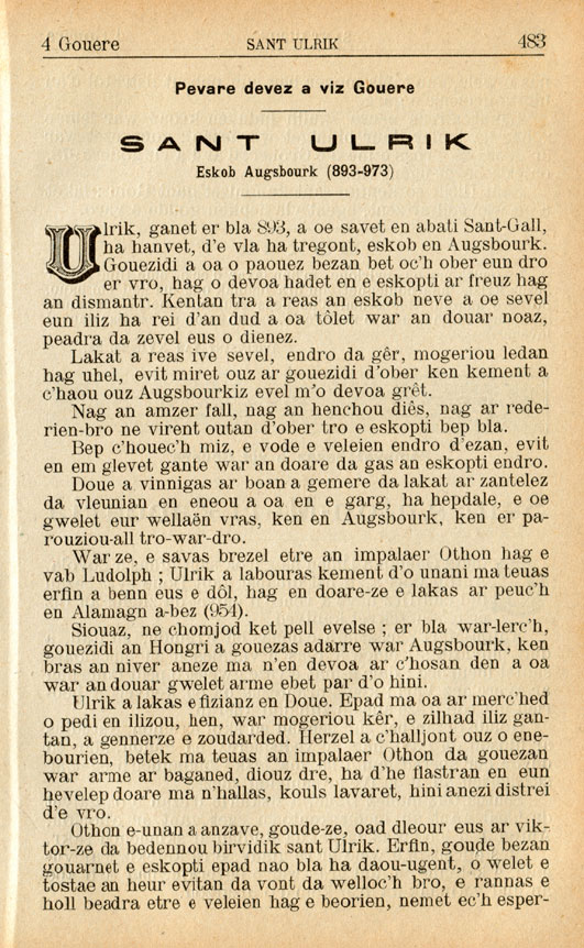 Ulrik, ganet er bla 893, a oe savet en abati Sant-Gall, ha hanvet, d'e