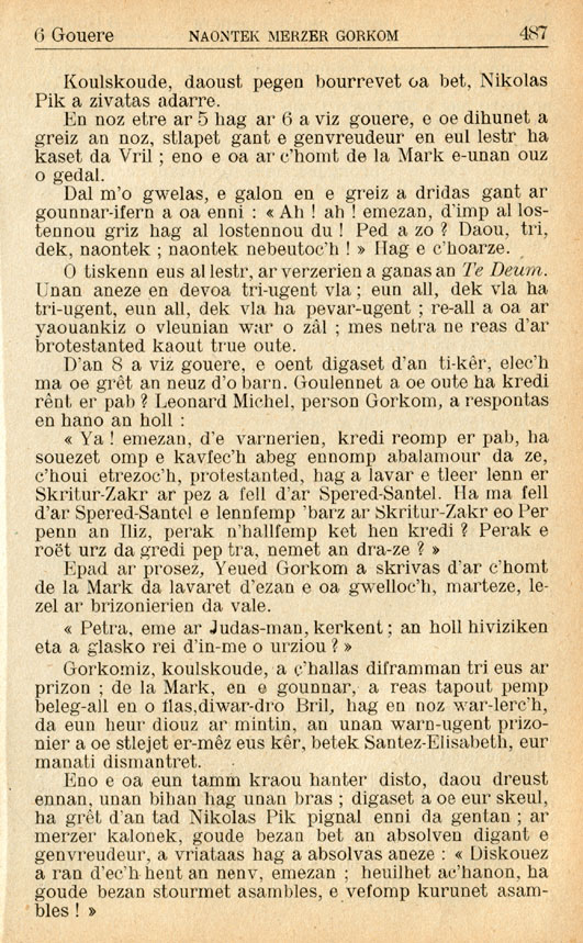 D'an 8 a viz gouere, e oent digaset d'an ti-kêr, elec'h ma oe grêt an neuz d'o barn. Goulennet a oe oute ha kredi rênt er pab ? Leonard Michel, person Gorkom,, a respontas en hano an holl :