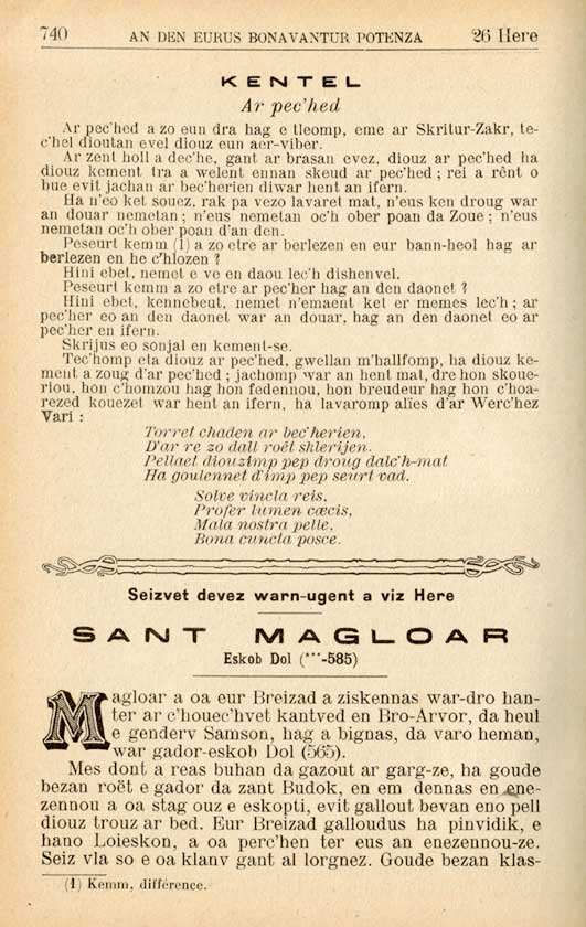 - Mat, eme an Tad Bonavantur, pa vin maro, klasket, en han' Doue, da zont war ho tro, eur beleg hag en devo hardiegez awalc'h evit lavaret d'ec'h ar wirione.