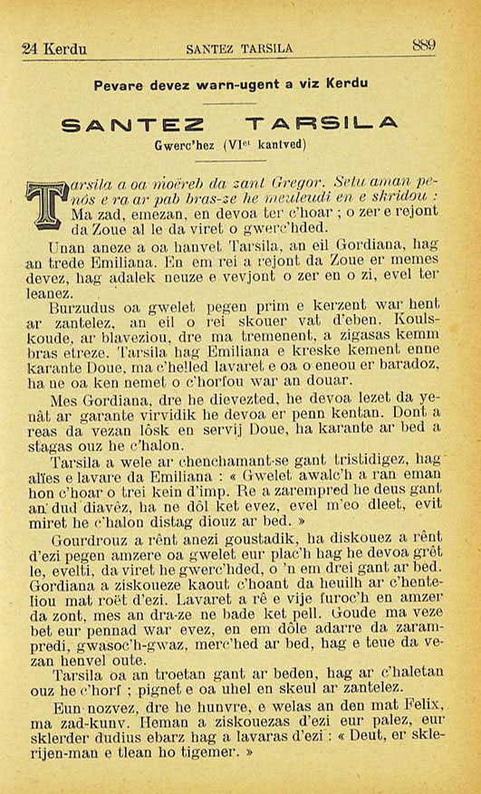 - Deut, pa lavaran d'ec'h, eme ar zantez, — hag he fenn a oa trist — deut, Gordiana a zo gwell ganti chom e-touez tud ar bed.
