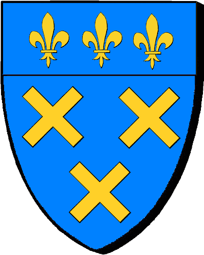 "D'azur à une croix alésée d'or, chargée d'un coeur de gueules et accompagnée de trois croissants d'argent, 2, 1, surmontés chacun d'une étoile d'or" "En glazur e groaz divouedet en aour, karget gant ur c'halon en gwad ouzh kondon hag heuliet gant teir c'hreskenn en arc'hant, 2, 1, leinet pep hini gant ur steredenn en aour" - Rolland, conseiller au Parlement de Bretagne en 1599. - Pierre, conseiller au Parlement de Bretagne en 1624. Fondu en 1655 dans la Bourdonnaye. |