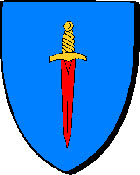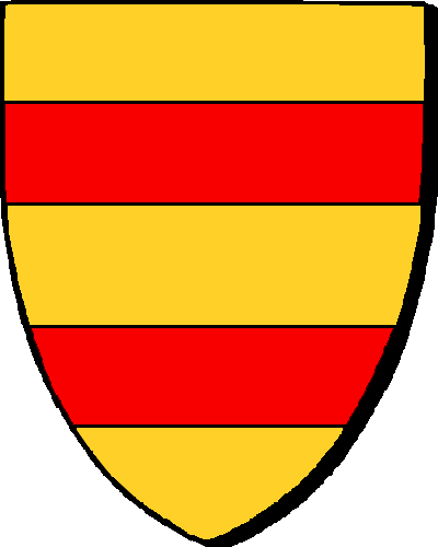 Famille de Cresolles : "fascé, danché, de six pièces d'or et d'azur / treustellet, gourdentek, a c'hwec'h pezh en aour hag en glazur" |