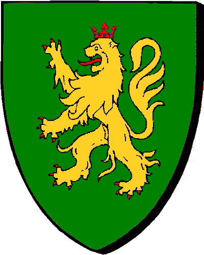 "d'azur au lion d'or; au chef palé d'argent et de gueules" "en glazur e leon en aour; e gab peuliet etre arc'hant ha gwad" - Antoine, conseiller au Parlement de Bretagne en 1560. |