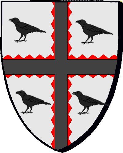Famille de Cadoudal : seigneur dudit lieu et de Kervéno, en Plumelec; des Salles, de Kermarker, en Guern. "d'argent à la croix engreslée de sable" / "en arc'hant e groas goñchek en sabel". références et montres de 1427 à 1536. (PPC) |