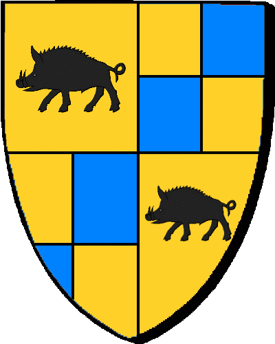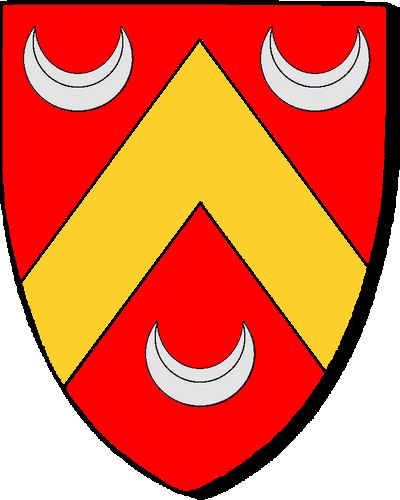 "d'azur au chevron d'or, accompagné de trois pommes de pin de même" "en glazur e gebrenn en aour, heuliet gant teir aval-pin ivez en aour" - François, président aux Grands-Jours de Bretagne en 1538, puis président à mortier au Parlement de Bretagne en 1554 - René, président à mortier au Parlement de Bretagne en 1556 - Pierre, conseiller au Parlement de Bretagne en 1565 - René, (le même ?) président à mortier au Parlement de Bretagne en 1570 Une branche fondue en 1697 dans Contades; une autre branche transplantée dans l'Orléanais, y maintenue en 1668 |