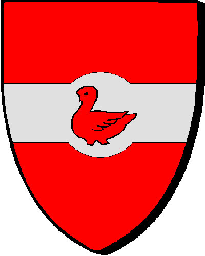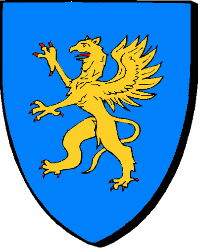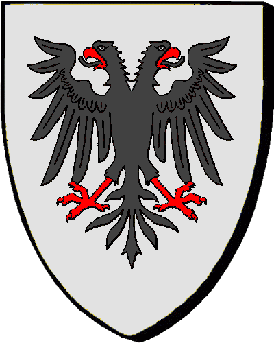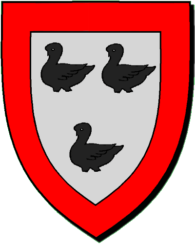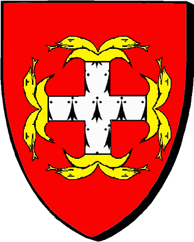 KERROUDAULT (de), seigneurs dudit lieu, par. de Guipavas; de Poulbroc'h, par. de Ploudiry, de Mesmeur; de Kerbasquiou; de Keraudren, par. de Pestivien. Ext. réf.1669, huit gén., réf. et montres de 1448 à 1534, par. de Guipavas et Ploudiry, év. de Léon. "D’argent au greslier de sable, accompagné de trots hures de sanglier arrachées de méme" 'En arc'hant e c'hrizilher en sabel, heuliet gant teir joskenn moc'h-gouez diframmet ivez en sabel" alias / neuz all: "Écartelé d'or au sautoir (alias à la croix ancrée), d'azur (G. le B. ), qui est GESTIN" "Palefarzhet en aour (neuz all e groaz eoriek) en glazur, hag a zo GESTIN" Cette famille portait anciennement le nom de le Goff et remonte à Jean le Goff, de la paroisse de Milizac, anobli en 1426, marié à Marie de Kernezne, dont - Perrot, époux de Catherine Gestin, dame de Poulbroc'h. La branche de Poulbroc'h fondue dans PENFENTENYO puis SAISY et FORESTIER. --------------- Un Olivier de Kerroudault a été conseiller aux Grands-Jours de Bretagne en 1495. |