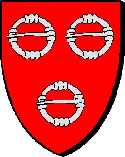 KERALY (de), seigneurs dudit lieu, par. de Bubry; du Foz, par. de Melrand; de Talhouët; de Saint-Sauveur; comtes du Chesnay, par. de Guipel; sr de Kervenic; du Boishamon; de la Ville-Alain; de Kerabel; de Cohignac, par de Plouray. Anc. ext. chev., réf.1669, huit gén.; réf. et montres de 1448 à 1536, par. de Bubry, év. de Vannes. "d'azur, à trois coquilles d'argent; une fleur de lis d'or en abîme" "en glazur, e deir c'hregilhenn en arc'hant; ur vlourdilizenn en aour ouzh kondon" - Guillaume, praticien exempt, vivant en 1422, marié à Jeanne de Saint-Nouay; - deux conseillers au parlement en 1619 et 1686. - Louis, conseiller au Parlement de Bretagne en 1619. |