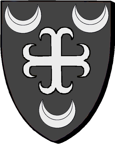 Famille Laisné : seigneur de Ligadec, en Boquého; de Pencrec'h; de Kergoff; de Belle-Fontaine. "d'argent au croissant de gueules, accompagné en chef de trois mouchetures de sable et en pointe d'une molette de gueules" / "en arc'hant e greskenn en gwad, heuliet ouzh kab gant teir brizhenn en sabel hag ouzh beg gant ur rodig-kentr en gwad". références et montres de 1427 à 1535. (PPC) |