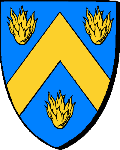"d'azur au chevron d'or, accompagné de trois flammes de même" / "en glazur e gebrenn en aour, heuliet gant tri flamm ivez en aour".
