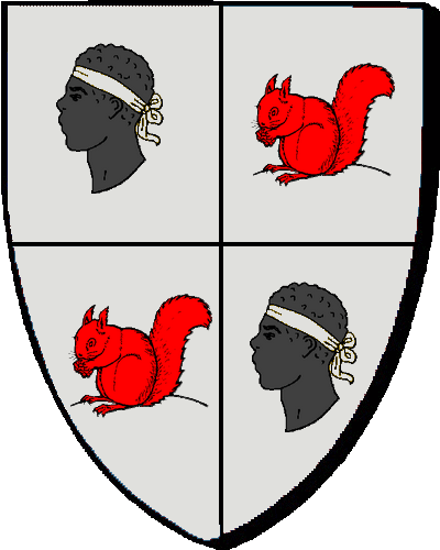 Maint réf. 1668, 0 gén.; ressort de Nantes. "Écartelé, aux l et 4 : d'argent à la tête de maure de sable, tortillée d'argent; aux 2 et 3 : d'argent à l'écureuil de gueules, qui est Fouquet" "Palefarzhet, ouzh 1 ha 4 : en arc'hant e fenn morian en sabel talwedek en arc'hant; ouzh 2 ha 3 : en arc'hant e gwiñver e gwad, hag a zo Fouquet" - François, conseiller au Parlement de Bretagne en 1610, marié à Marie Merceron, dont : - Claude, conseiller au Parlement de Bretagne en 1643, épouse Renée Cazet de Vautorte, dont : - Henry-René, conseiller au Parlement de Bretagne en 1673, décédé en 1684. |