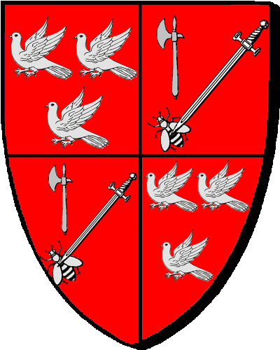 Famille de Saint-Georges : seigneur dudit lieu et de Lannurien, en Plouescat; de Mesqueffuruz, en Plougoulm. "d'argent à la croix de gueules" / "en arc'hant e groaz en gwad". références et montres de 1427 à 1481. (PPC) |