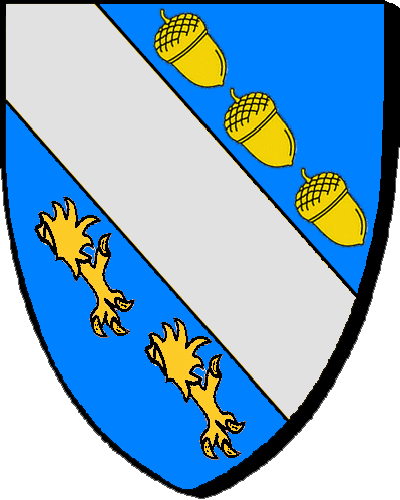 Anc. ext. chev. réf. 1669. quatre gén.; réf. de 1429 à 1513, par. de Saffré, le Clion, Couëron, Sucé, Chauvé et Ligné, év. de Nantes . "d''azur à trois croisettes fleurdelysées d'or; au chef de même" "en glazur e deir groazig flourdilizek en aour; e gab ivez en aour". (Sceau / Siell 1395) - Foulques, vivant en 1300; - Alain, chevalier-bachelier dans une montre de 1370, marié à Philipotte de Laval; - Guillaume, maître de la vènerie en 1492; - Pierre, vivant en 1513, père de François, marié à Marie Trimorel. La branche aînée fondue en 1416 dans TOURNEMINE. (PPC) |