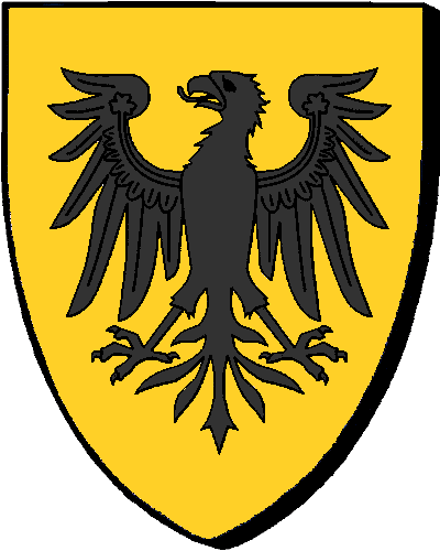 Famille Talbot : originaire de Normandie, puis d'Angleterre; seigneur de Fournival; compte de Shrewbury; duc de Tyconnel. "de gueules au lion d'or, à la bordure engrêlée de même" / "en gwad e leon en aour, e vevenn koñchek ivez en aour". sceau / siell 1438. devise / ger ardamez : Près d'accomplir. (PPC) |