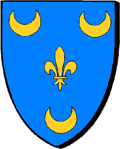 "d'or à trois léopards de sable l'un sur l'autre, celui du milieu contourné" "en aour e zri leonparzh en sabel an eil dreist egile, an hini kreiz ouzh kleiz" - Jean, secrétaire du Roi en 1556, puis maître d'hôtel de Charles IX et secrétaire des Finances en 1572, frère de - Claude, conseiller au Parlement de Bretagne en 1570 |