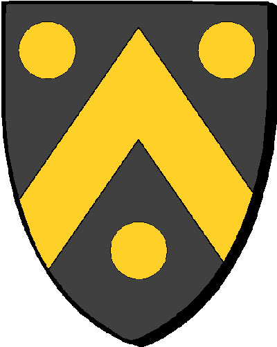 Famille de Tribara : "de sable, à un chevron d'or, accompagné de trois besants d'or / en sabel, e gebrenn en aour, heuliet gant tri bezantenn ivez en aour" |