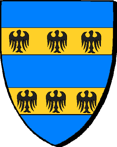 VILLEBLANCHE (DE), sr dudit lieu, du Plessis-Balisson, par. de ce nom; de la Porte et de la Motte, par. de Maumusson; de Broons, par. de ce nom; de Bagatz, par. de Guichen; du Mesnil; de Martigné-Ferchaud, par. de ce nom; de Brancien; de Ploësquellec, par. de ce nom; de Trogoff, par. de Plouégat-Moysan; de Callac, par. de ce nom; du Pontblanc, par. de Plouaret; du Plessix-au-Noir, par. de Trédaniel. Réf. de 1454 à l543, par. de Maumusson, Broons, Ploësquellec, Plouégat et Plouaret, év. de Nantes, Saint-Malo, Cornouaille, Tréguier et Saint-Brieuc. "De gueules à la fasce d'argent, accompagnée de trois hures de saumon de méme" "En gwad e dreustell en arc'hant, heuliet gant teir joskenn eog ivez en arc'hant" (Sceau / Siell 1420). - Pierre, capitaine de Rennes en 1440; - Henry, chevalier du Porc-épic en 1448, grand-maître de Bretagne en 151; - Guillaume, abbé Sainte-Croix de Quimperlé en 1453, décédé en 1483; - Claude, panetier de la reine Claude de France en 1522, chevalier de l'ordre en 1538. Fondu dans ESPINAY. |